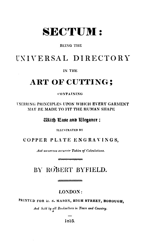 A guide to the construction of men and boys’ clothing of the time. It covers the garments for various ages, as well as occupations. It also has short sections for basic women and girls’ clothing. At the end are small sections for “Negro” clothing measurements. However, these sections were added for the “Plantations in the West Indies, or in America, where the Owners possess many Slaves”. (Preface pg. vi)